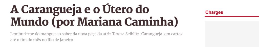 Através de um lugar, o manguezal, bioma formado pelo encontro da água do rio com a água do mar, conhecido como berço de diversas espécies de plantas e animais, CARANGUEJA fala da força criadora vital, do planeta Terra. Escrita por mulher atriz e co-dirigida por uma mulher trans, a peça joga luz sobre as diversas ‘mulheridades’ existentes no nosso mundo em movimento.