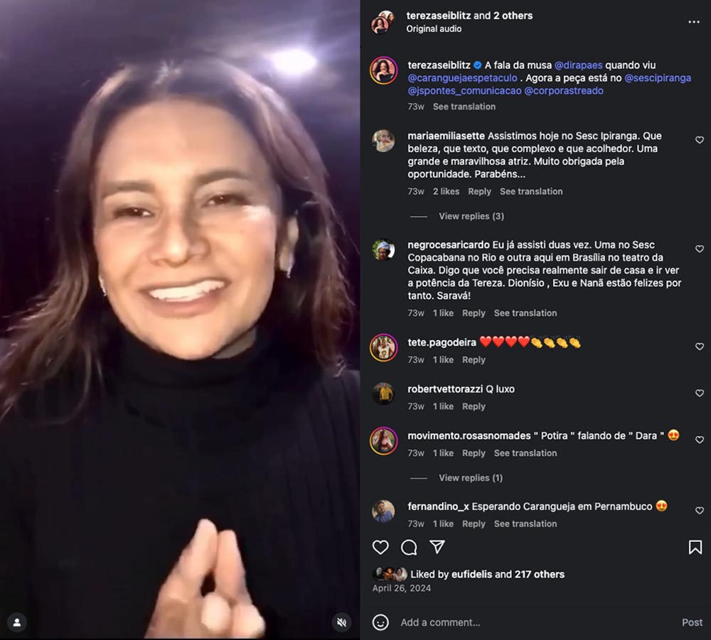 Instagram: Manuela Seiblitz @caranguejaespetaculo