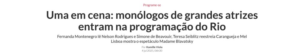 Cumpriu temporada entre os dias 8 de julho e 27 de agosto de 2025, no Teatro Poeirinha, no Rio de Janeiro. Ainda em agosto, apresentou-se em Petrolina, no Festival Velho Chico.